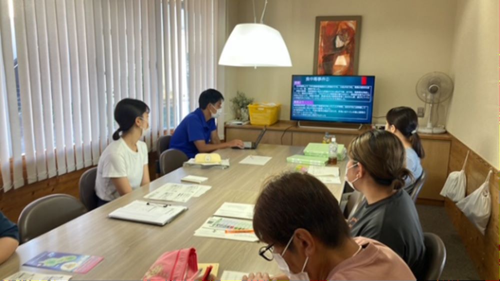 衛生管理に関するマニュアルをもとに、洗浄消毒の注意点や適切な手洗い等について教育庁八丈出張所の栄養士から話をしました。