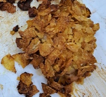 スチームコンベクションオーブンを使用し、オーブン機能で焼いて調理しました。コーンフレークを衣として活用したため、揚げてはいませんがザクザクとした食感を楽しむことができ、脂質を抑えつつも満足感がありました。