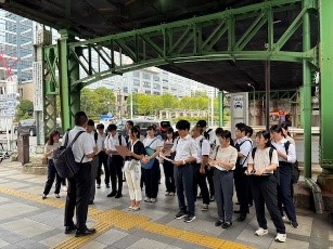小学校4年生(3学級:75名、引率教員:5名、各学級5グループ)の社会科見学を想定して、公共交通機関や公共施設を利用した校外学習の模擬体験を行いました。