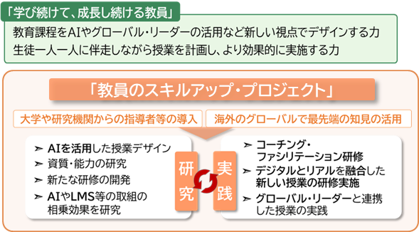 一方で、生徒の主体的な学びに伴走するため、「新たな教育のスタイル」に合わせて教員のスキルアップも重要であることから、令和8年度からは、教員研修の改善や研修環境の整備に取り組んでいきます。