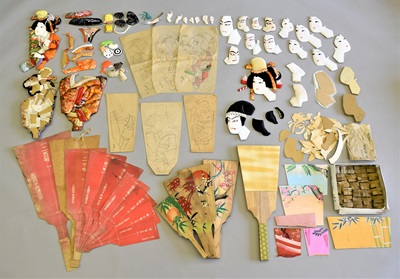 本資料群は、東村山市に所在した「はなびや人形店」で大正期末より平成17年に閉業するまで作られた、押絵羽子板の下絵から完成品に至る製作関連資料である。店主の川島氏が販売店でありながら「面相師」「押絵師」の技術を合わせ持っていたことから、一連の製作工程を追える膨大な資料群が蓄積された、質量ともに充実したコレクションである。